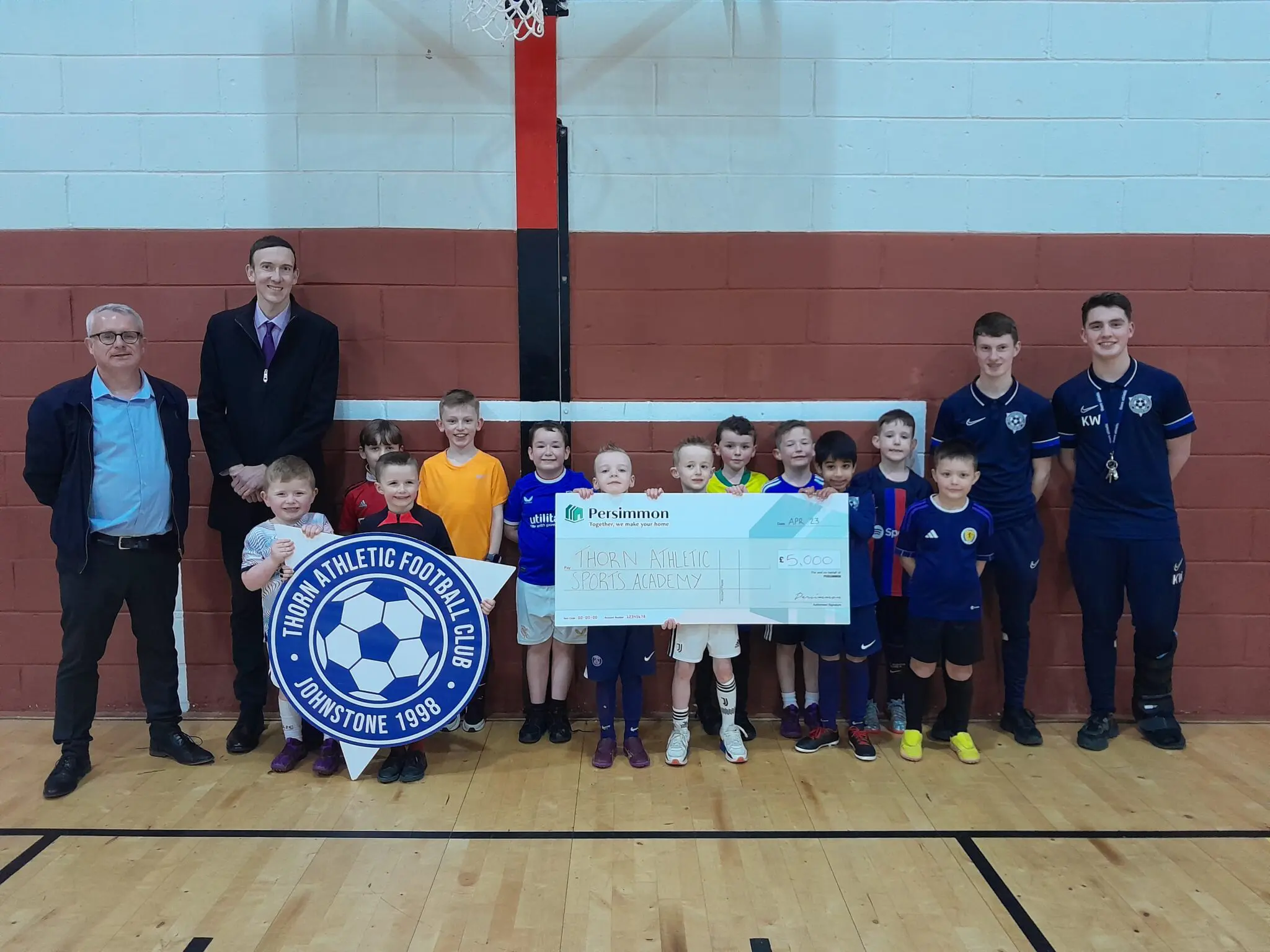 Thorn Athletic Community Trust is celebrating after landing a £5,000 donation from local home builder Persimmon West Scotland.