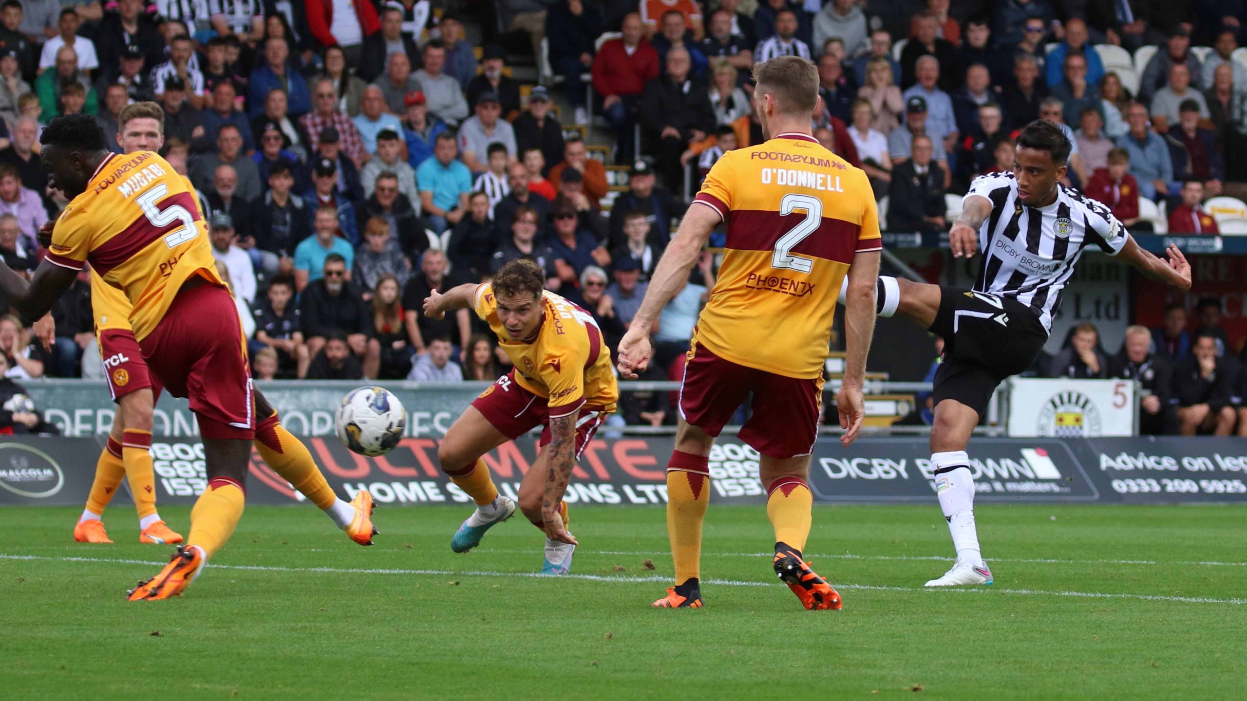The second half saw Motherwell try to claw their way back into the game and Theo Bair must have thought he was going to equalize when his goal bound shot was tipped over the bar by Saint’s keeper Zach Hemming.