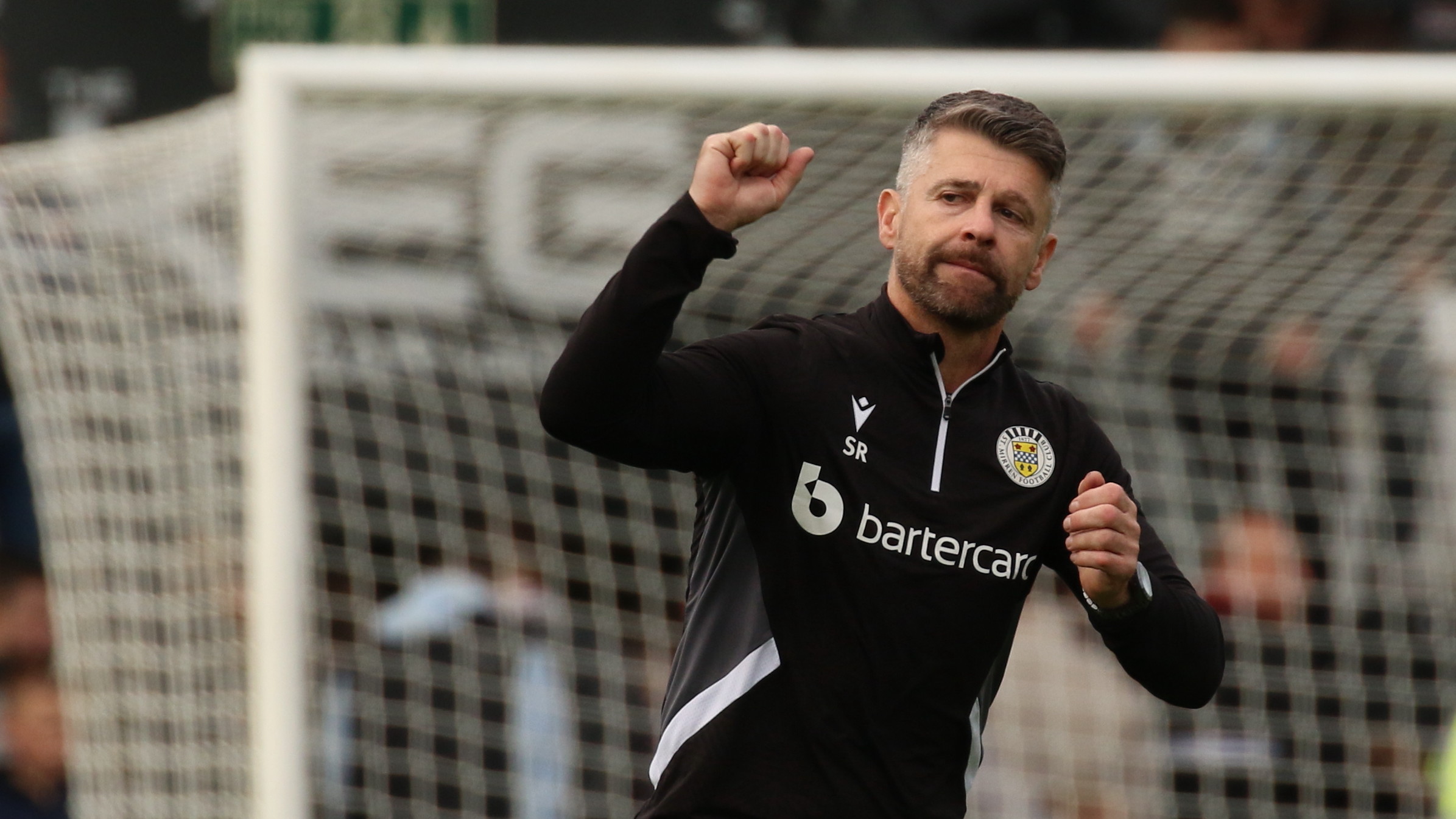 Photo: Saints Manager Stephen Robinson celebrates after the final whistle