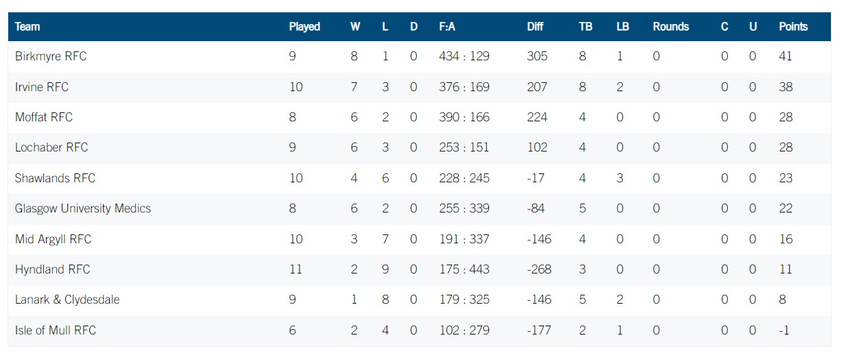Birkmyre’s winning streak continued on Saturday with a convincing 76-12 away win against Hyndland. The game for more or less over after the first 40 minutes with Birkmyre going in 54-5 up at the half.