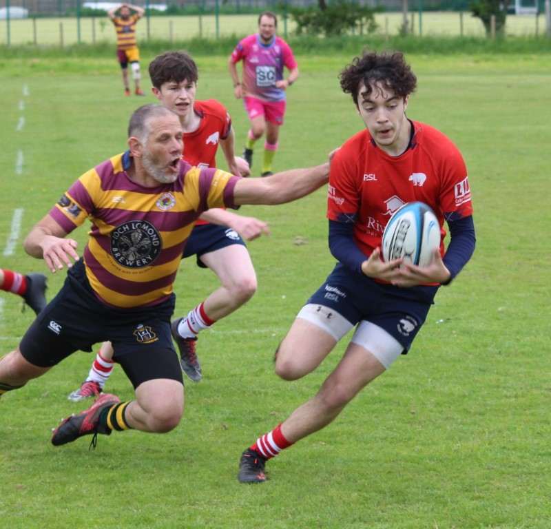 Tougher opposition awaited in match two against HelensBros which finished in a 24-24 draw. However, they clinched top spot in the table with a convincing 29-12 victory over their old league rivals Irvine, 29-12. Birkmyre’s youth, skills and fitness were key attributes in helping them score a “barrel load” of tries and progress to the knockout phase.