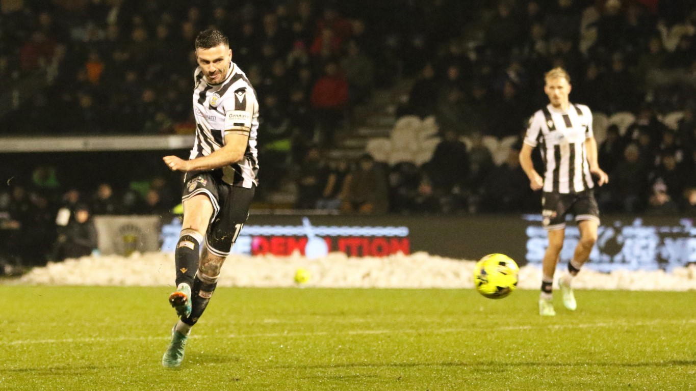 Photo: Saints Greg Kiltie has a shot at goal