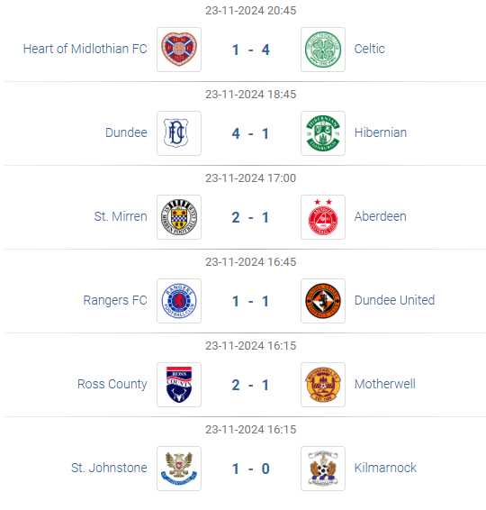 William Hill Scottish Premiership results: