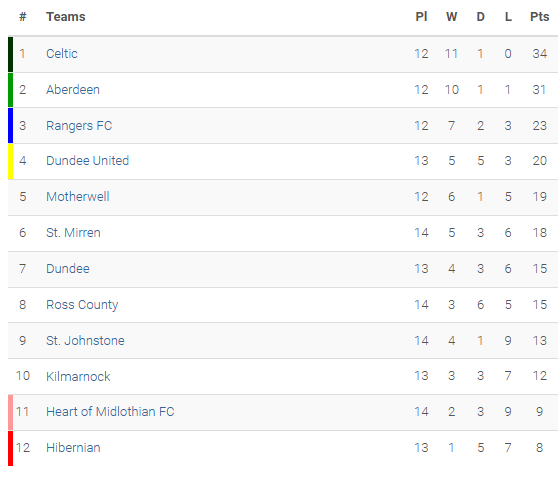 William Hill Scottish Premiership League Table:
