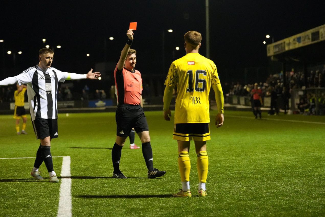 On the hour mark, things went from bad to worse for Johnstone Burgh. Aaron Mason appeared to raise a hand towards Oliver Fisher in an off-the-ball incident near the corner flag. The referee showed no hesitation and produced a straight red card for the former Auchinleck Talbot man, much to the delight of the home crowd and the frustration of the away support.