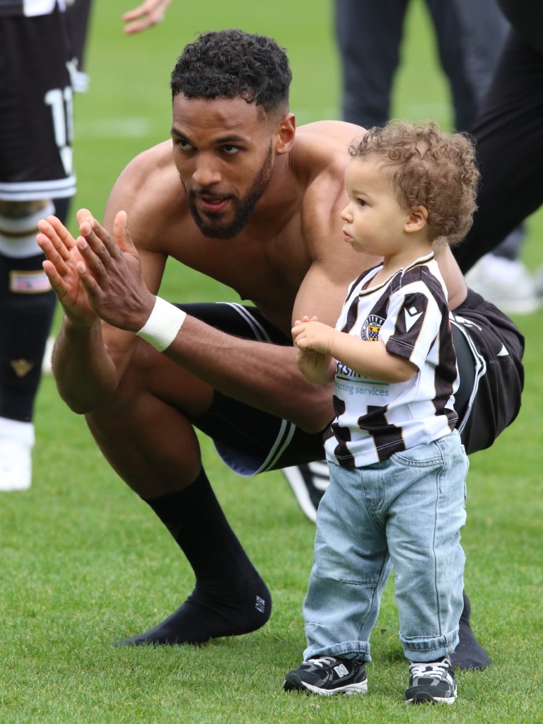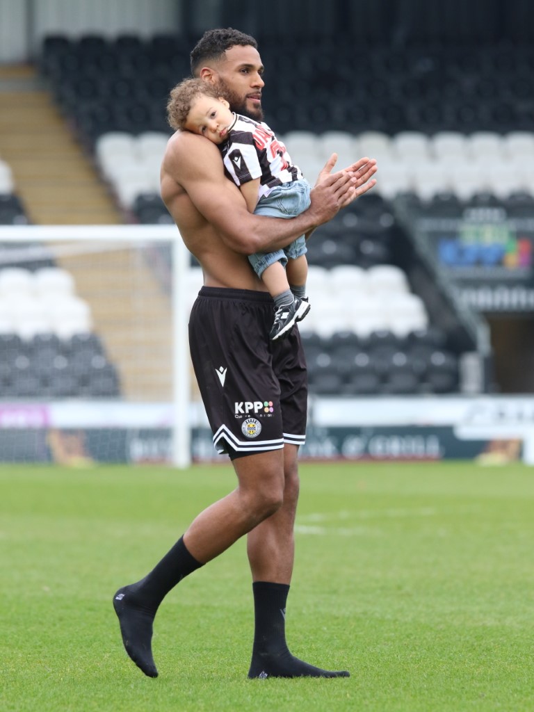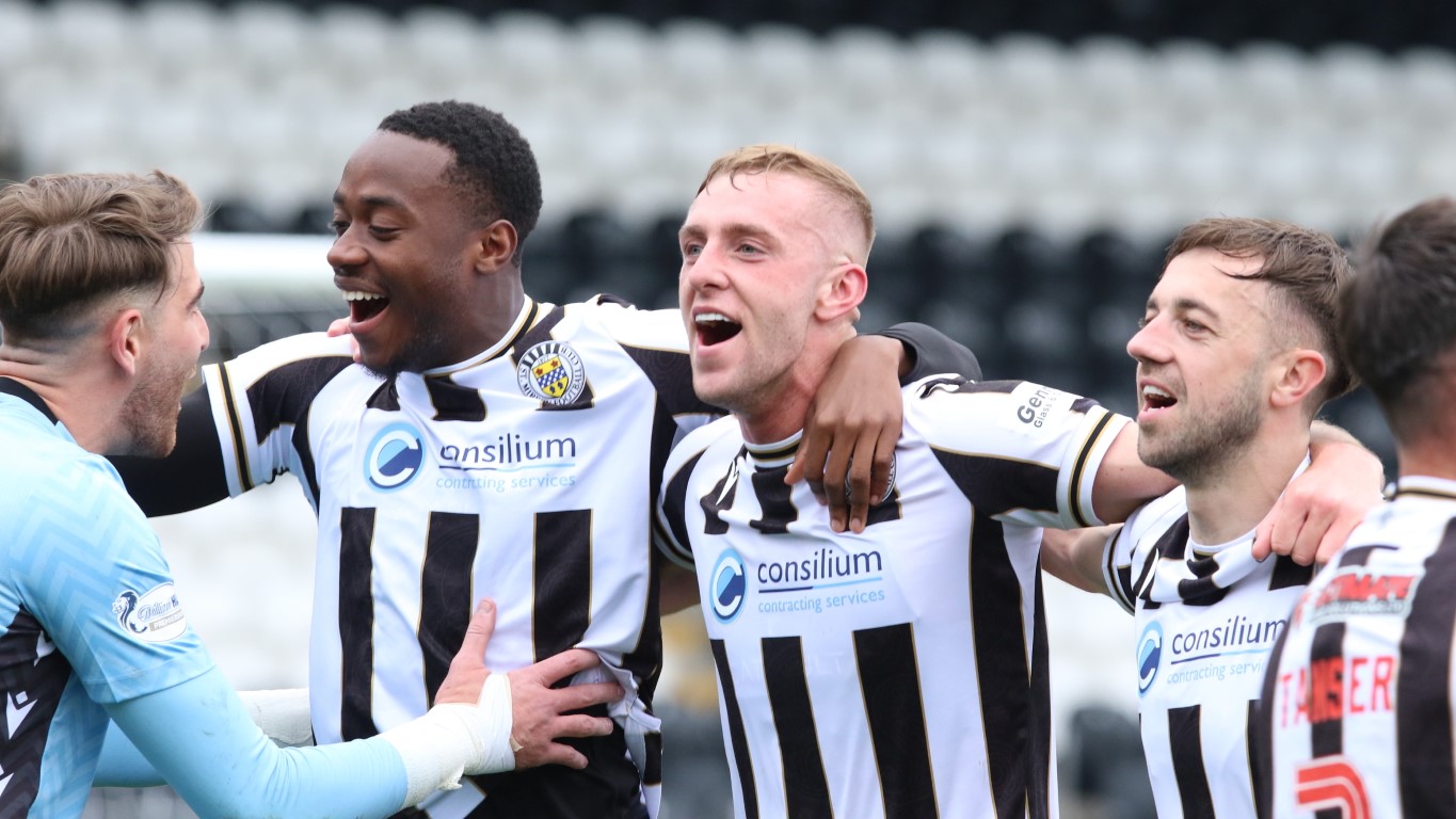 Photo: Saint's Roland Idowu take his top off, having just scored the winning goal to make it 3 -2