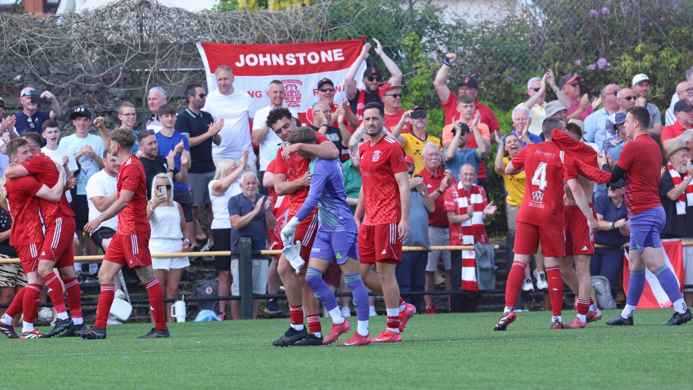 🛎️ FULL-TIME: It’s jubilation for Johnstone Burgh! A 2-0 victory at Barrfields secures their place in the Scottish Junior Cup final! They edge through 2-1 on aggregate—a heroic performance from the visitors!