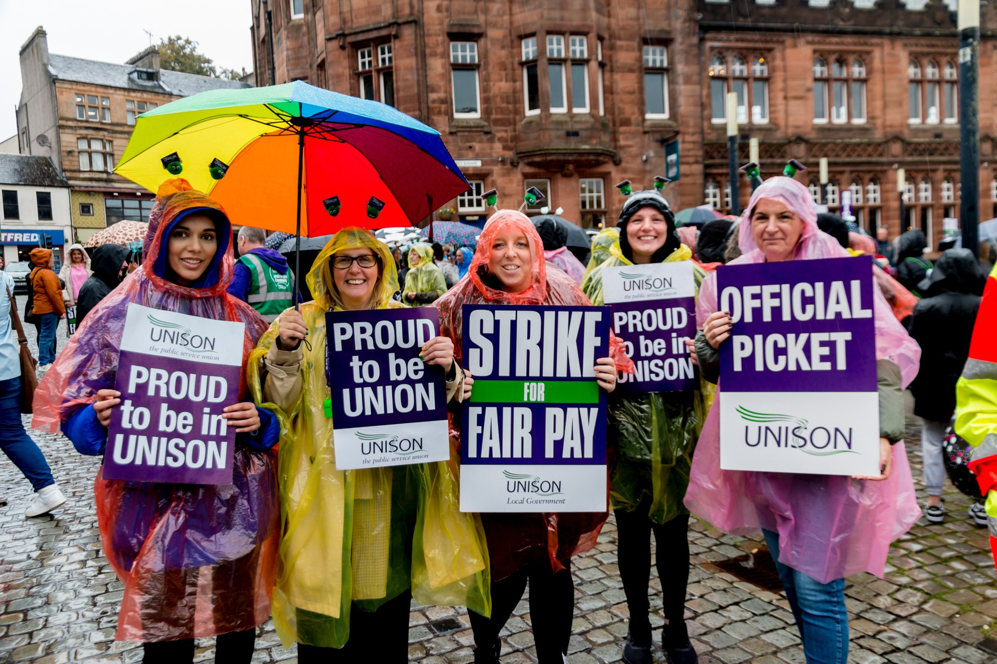 Photo: Striking UNISON school workers turn out in numbers at County Square, Paisley