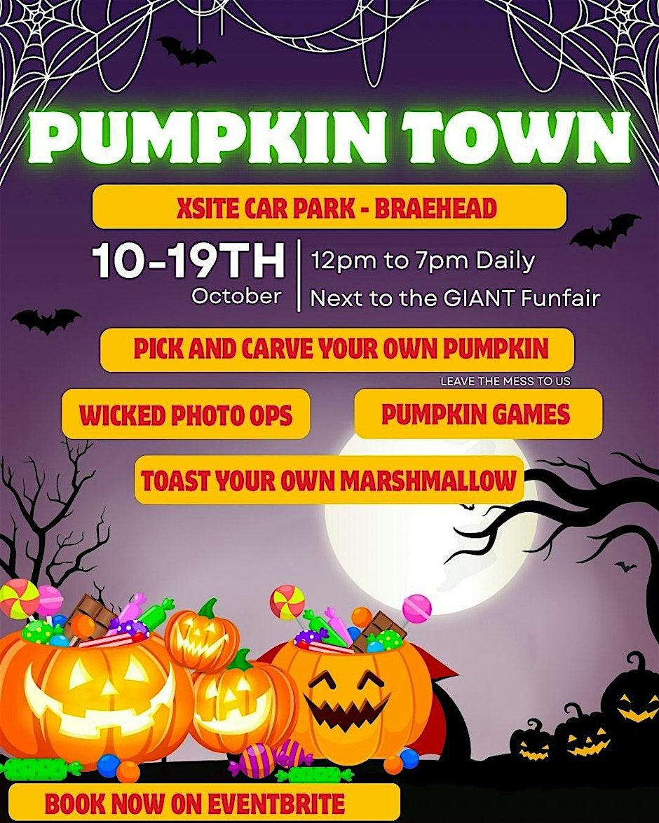 Tickets for Pumpkin Town are available now via Eventbrite, here: https://www.eventbrite.co.uk/e/pumpkin-town-xsite-braehead-tickets-1686791441609.