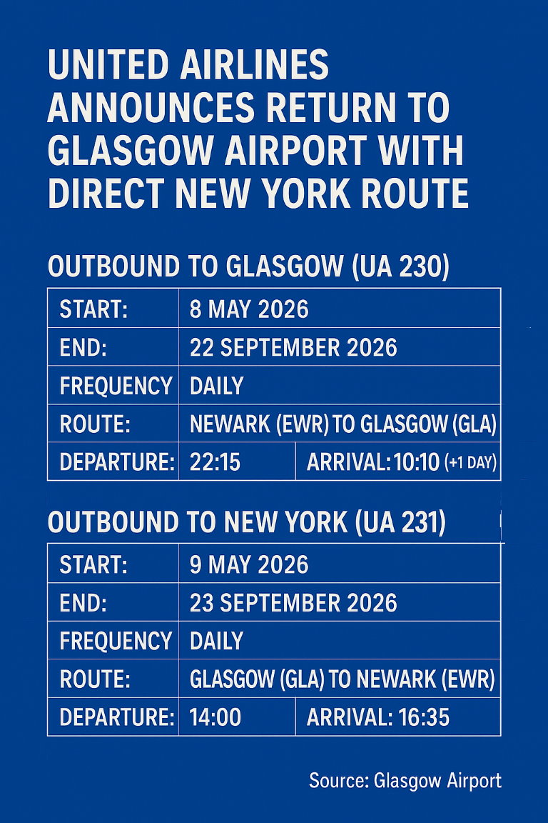 Transatlantic travel from the west of Scotland is set for a major boost as United Airlines confirms it will return to Glasgow Airport in 2026 – reinstating direct flights to its New York hub at Newark Liberty International Airport.