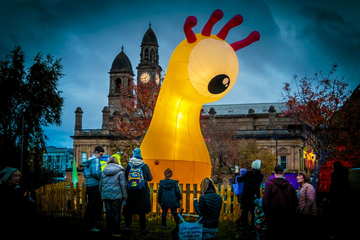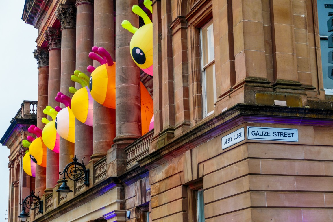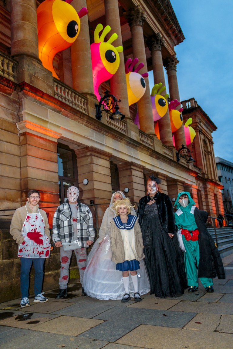 The town is dressed in its spooky best with monster installations and eerie lighting displays on some of the town’s most well-known buildings.