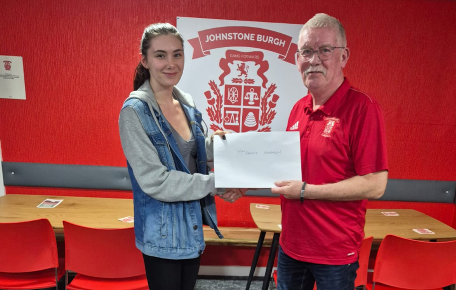 Headline photo: Mackenzie Cameron (left) receiving an award from former Johnstone Burgh club secretary Robert Kerrigan
