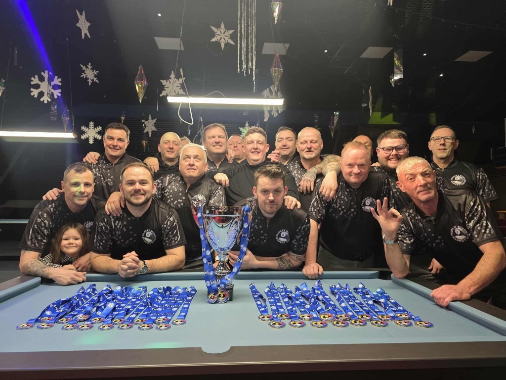Headline photo: Paisley Burgh A Pool League players with their trophy and medals after a successful county campaign