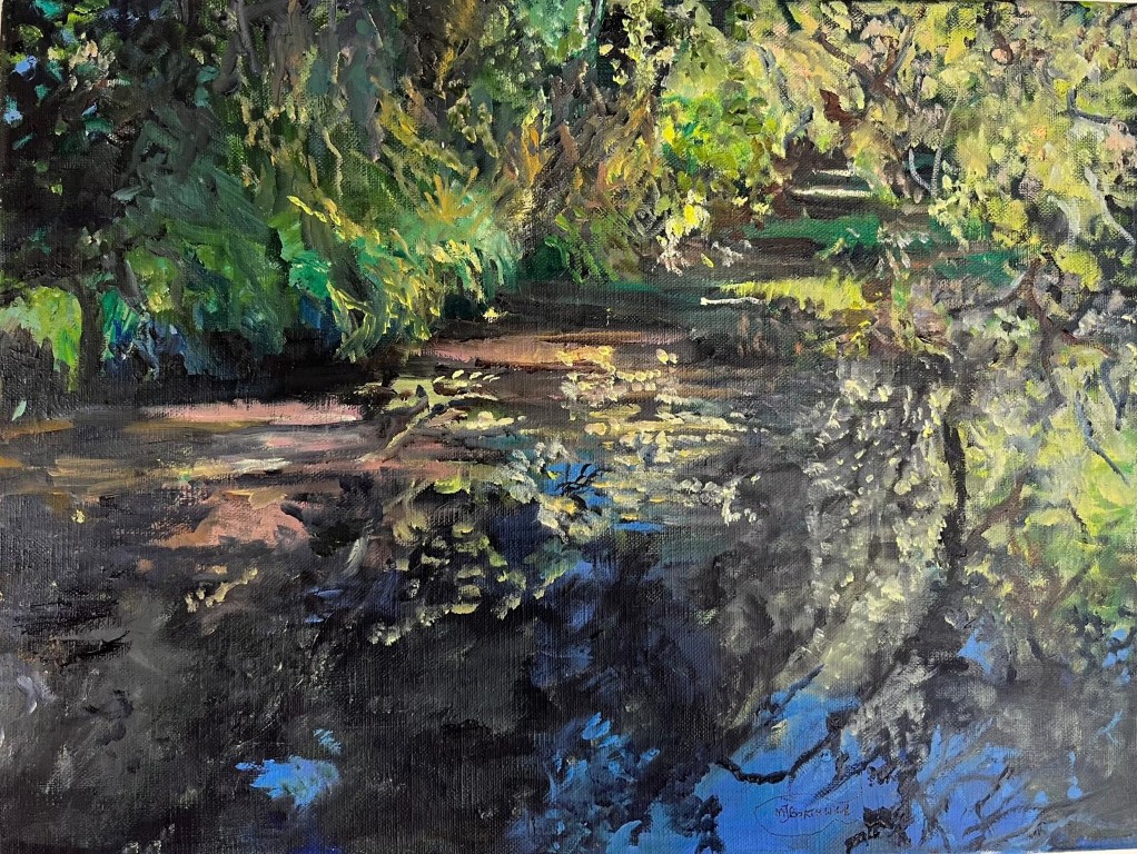 Margaret, who spent 37 years working as a GP in Johnstone, rediscovered her passion for art when she semi-retired 18 years ago. Local art clubs and classes helped her build confidence and develop her skills, eventually leading to an Honours Degree in Painting from the University of Creative Arts in London. Her degree show, “Heartlands”, was exhibited at the Beacon Arts Centre in Greenock. She is now a member of both the Paisley Art Institute and the Glasgow Society of Women Artists.
