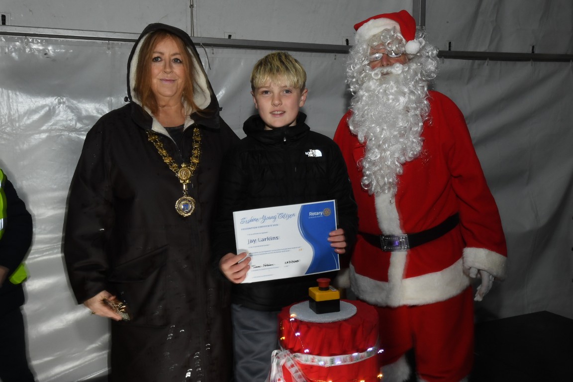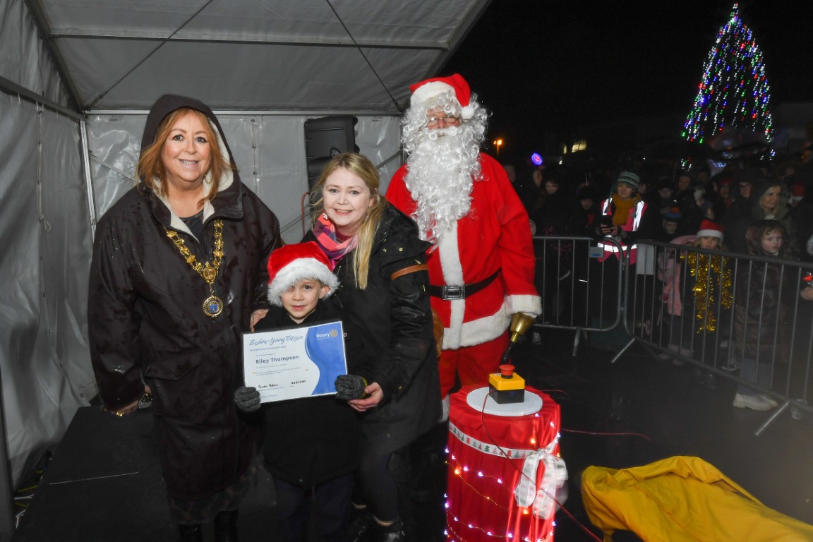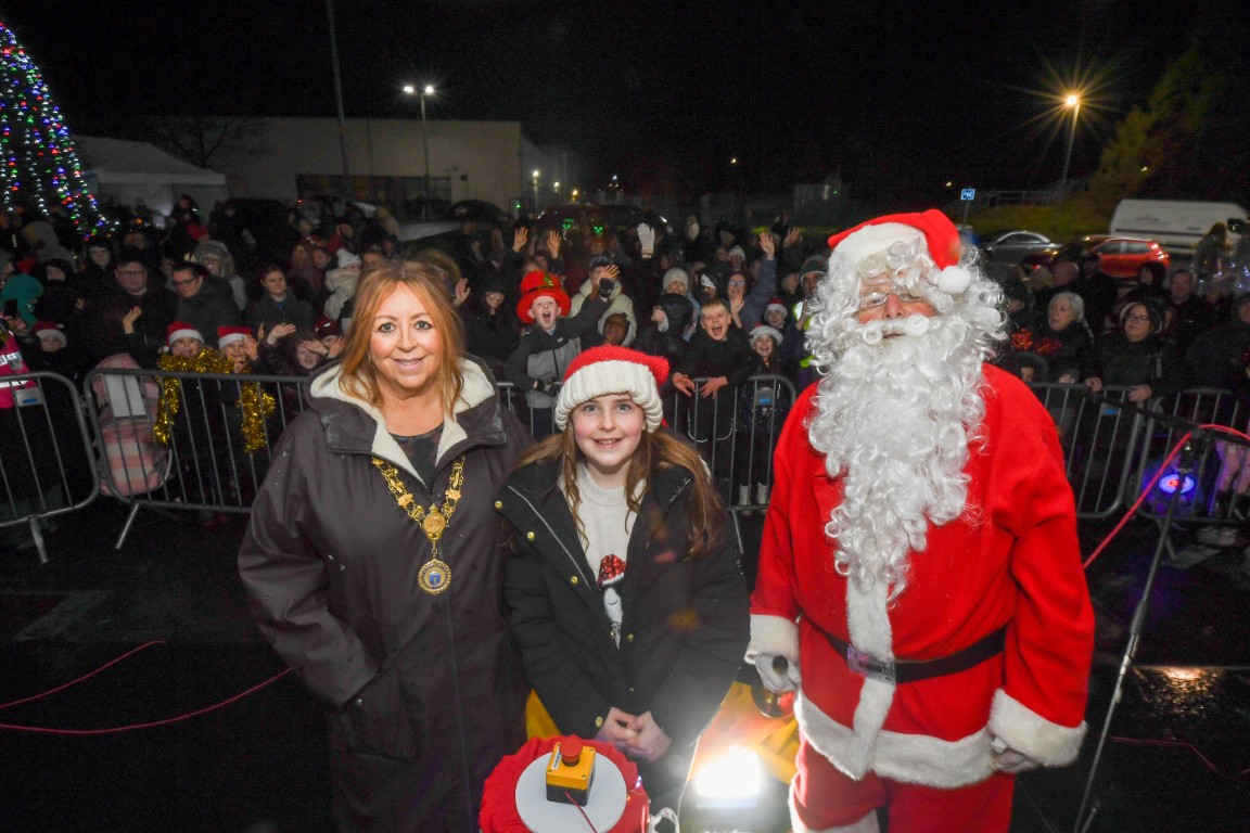 It wouldn’t be Christmas without an appearance from Santa, who joined Renfrewshire’s Provost Lorraine Cameron and competition winner Ayla from Rashielea Primary School to push the button and light up Erskine for the festive season.