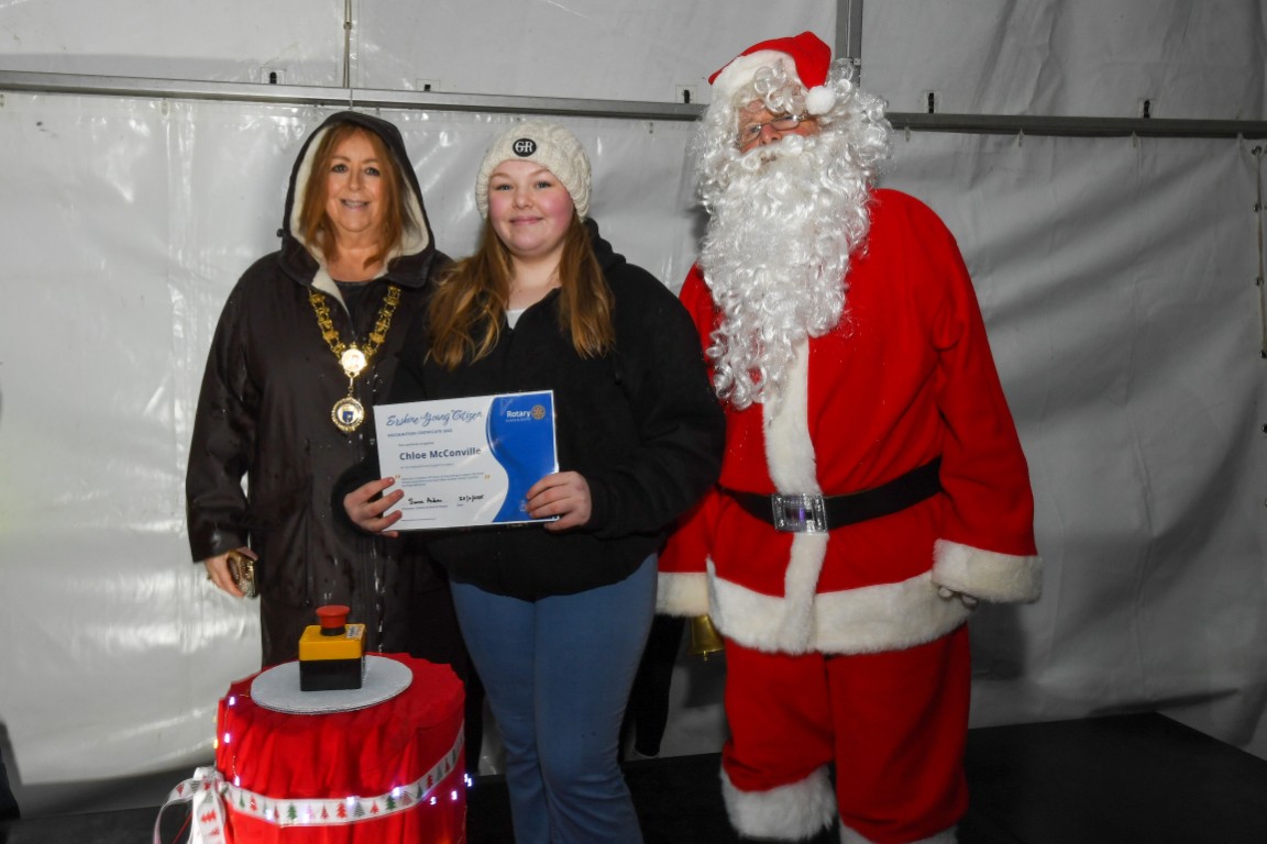 Photo: Chloe McConville with Provost Lorraine Cameron and Santa