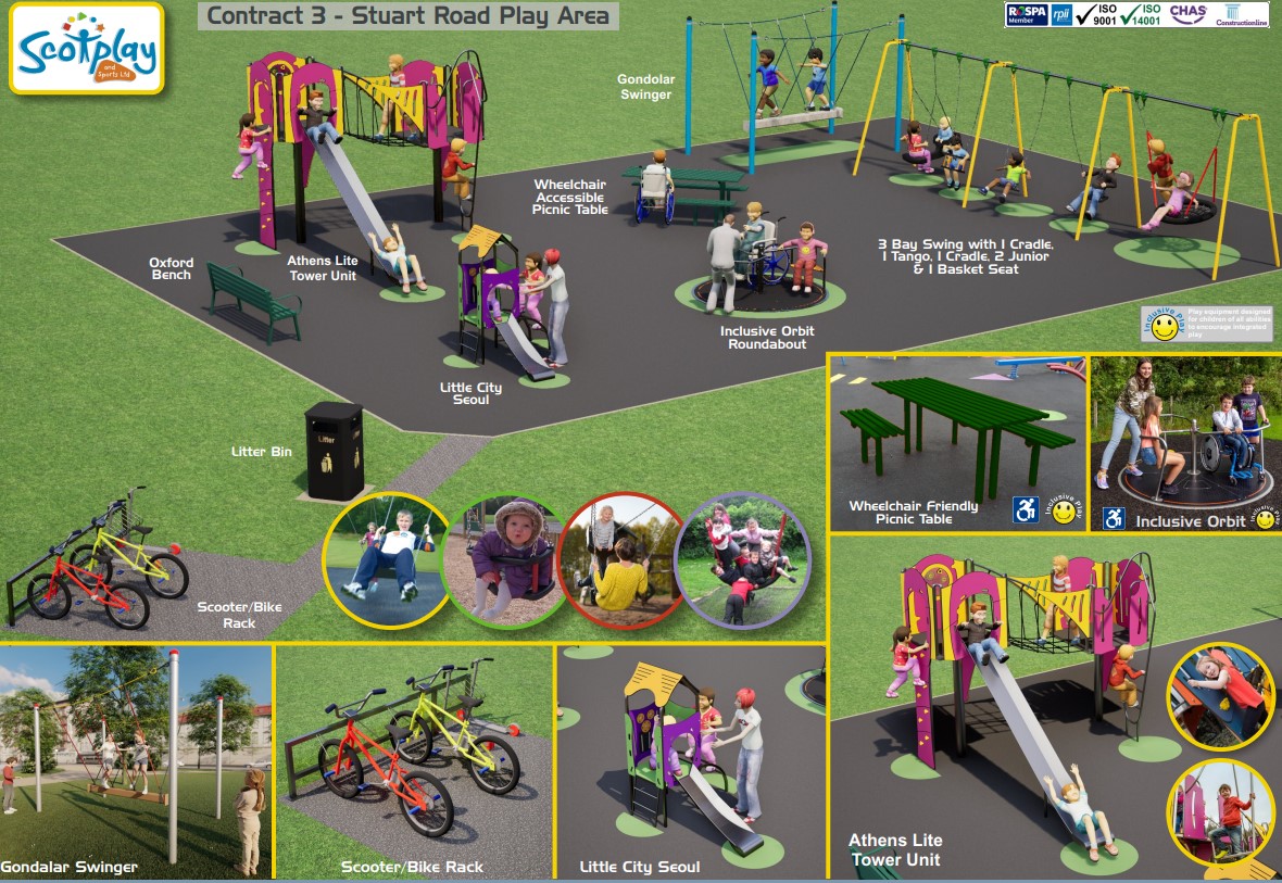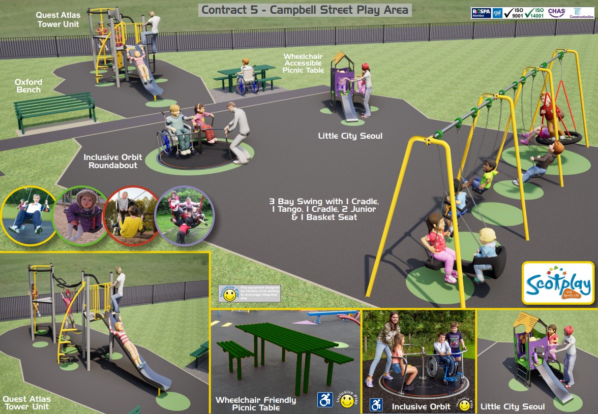 Contractors Sutcliffe Play Ltd, Kompan Scotland Ltd and Scotplay & Sports Ltd have now been appointed to carry out the upgrades with work anticipated to start at the sites early in the new year with work due to complete by late spring.