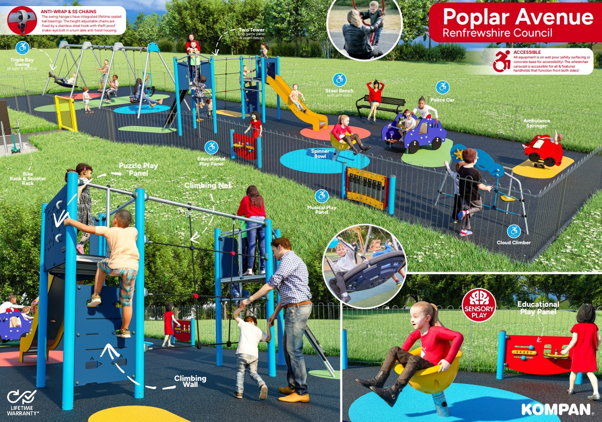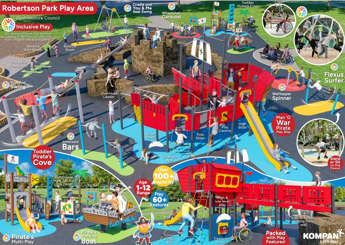 In addition to this, planning is also taking place for enhancements to a further three play parks in Renfrewshire: KGV Playing Fields, Renfrew, Robertson Park (Craigielea Road End), Renfrew and a brand new play park at Braehead Road, Paisley.