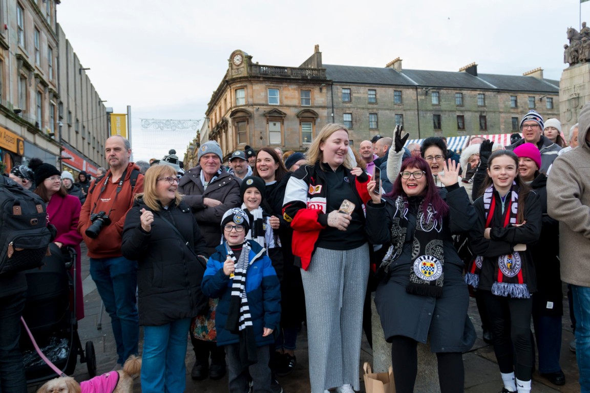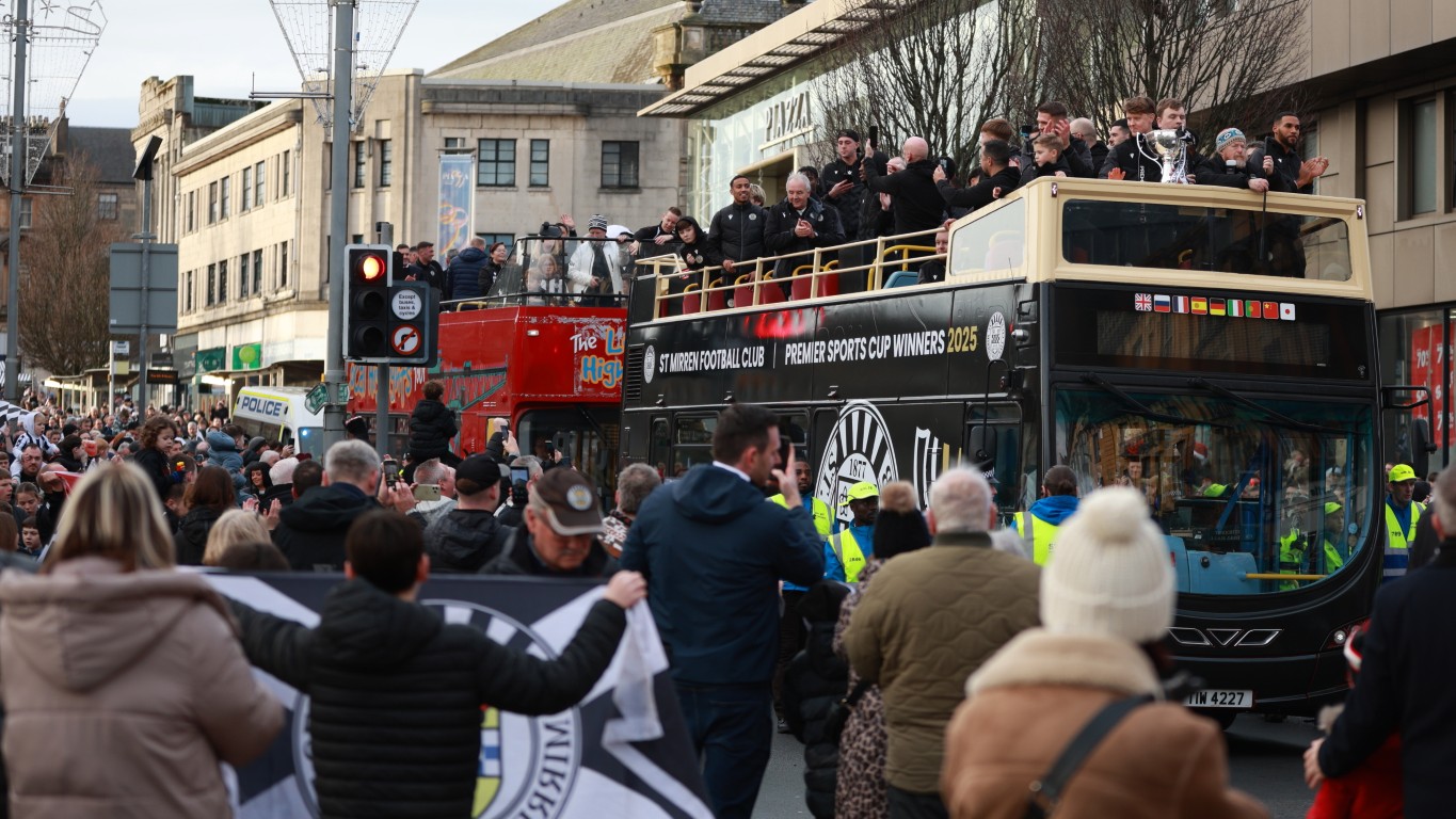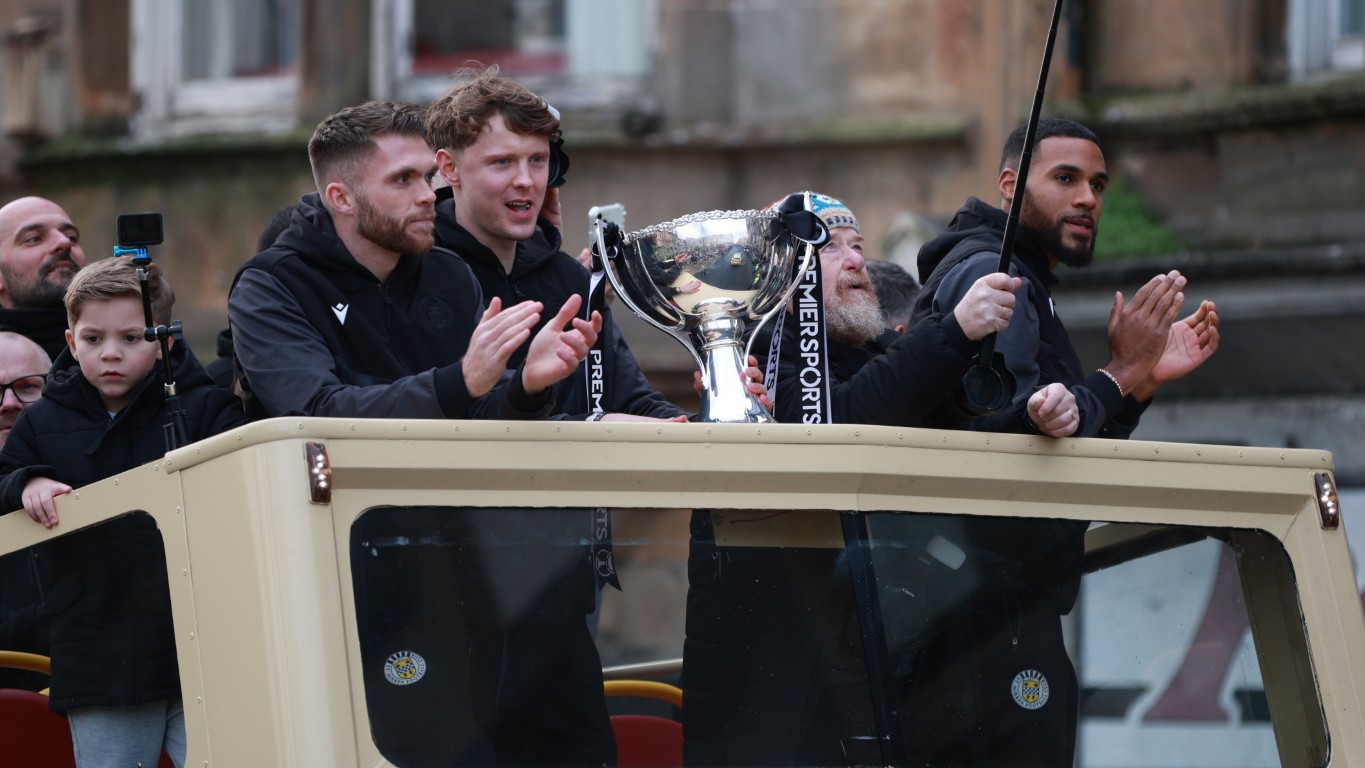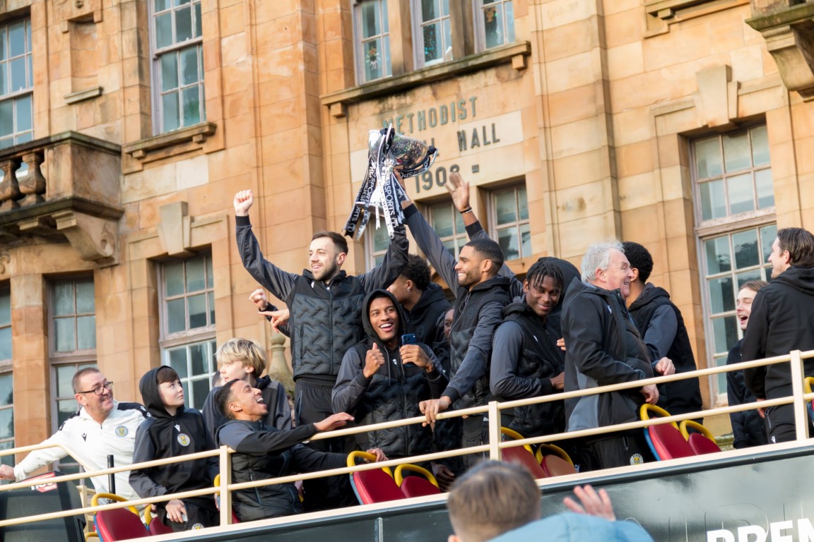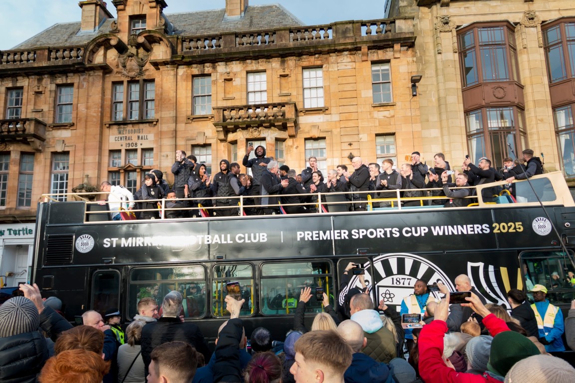 Players and staff were given a rousing reception as the procession made its way through the town, allowing fans another chance to celebrate a historic cup win. The Buddies lifted the Premier Sports Cup for just the second time in the club’s history after a memorable 3–1 victory over Celtic at Hampden Park, with goals from Marcus Fraser and a double from Jonah Ayunga sealing the win.