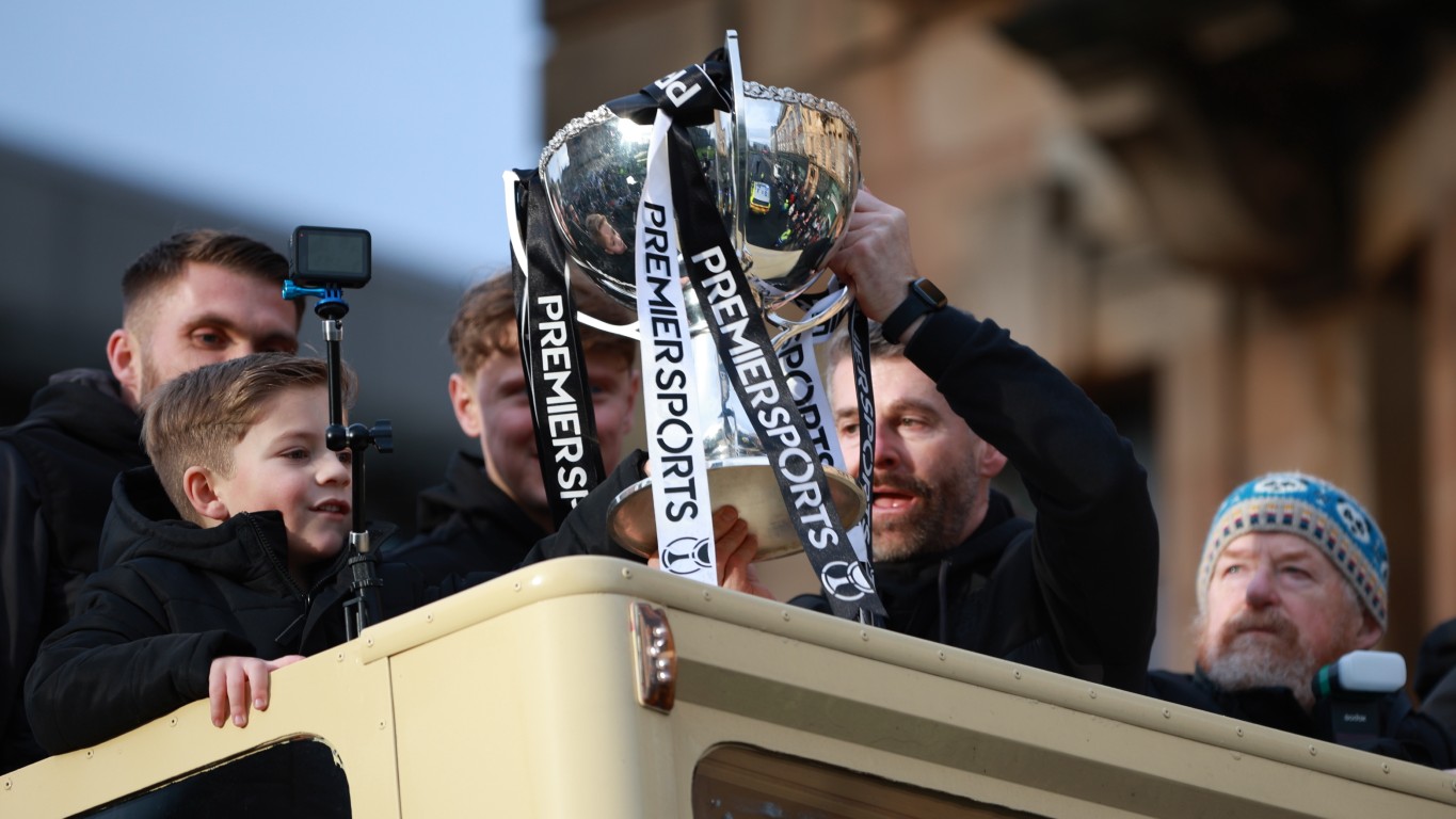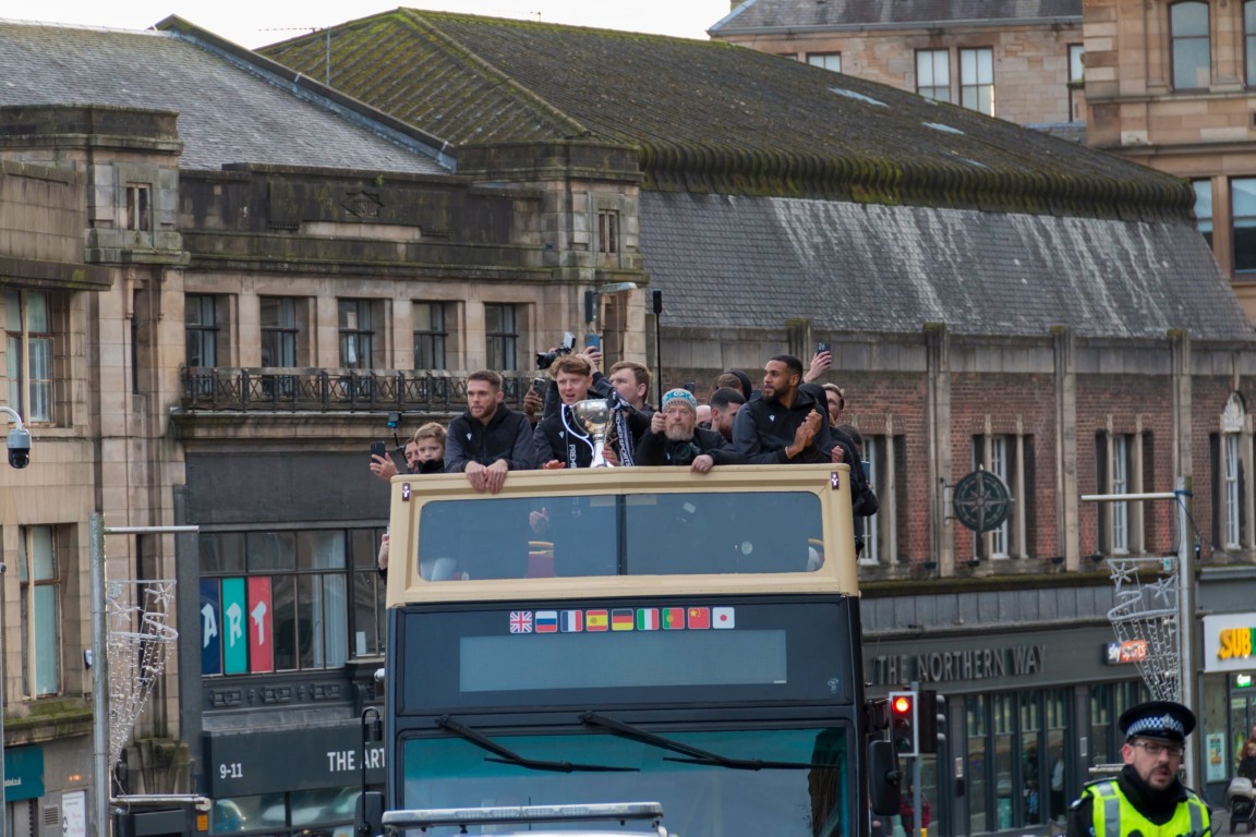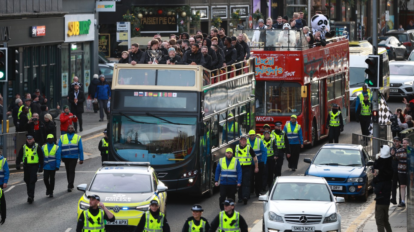 The parade followed a busy week of celebrations after thousands gathered at Paisley Town Hall to see the trophy on display. Sunday’s event built on that atmosphere, with crowds lining the route to applaud the squad and coaching staff as they passed by.
