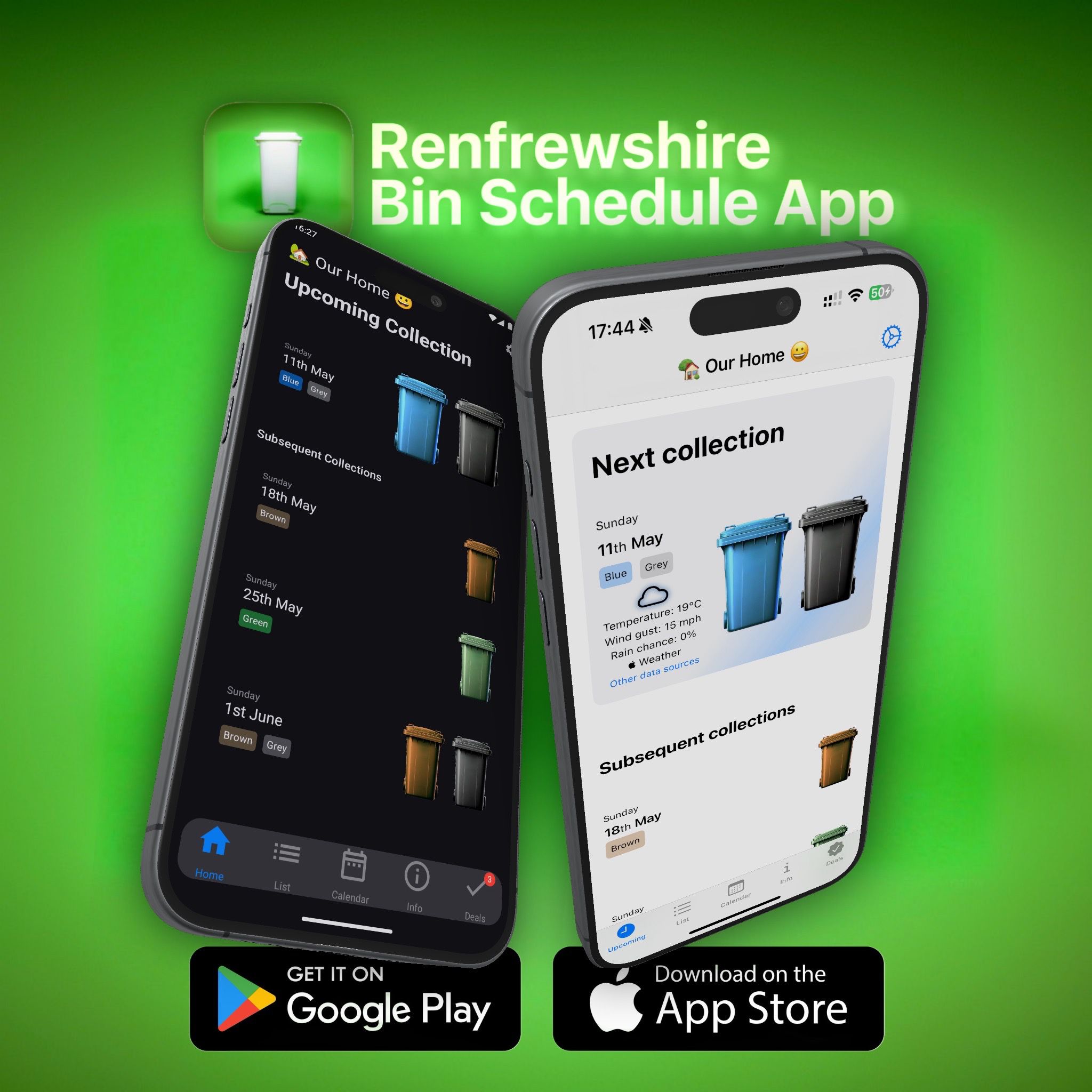 The app, called Renfrewshire Bin Schedule, is available on both the Google Play Store and Apple App Store and allows users to check their bin collection dates directly on their phone.