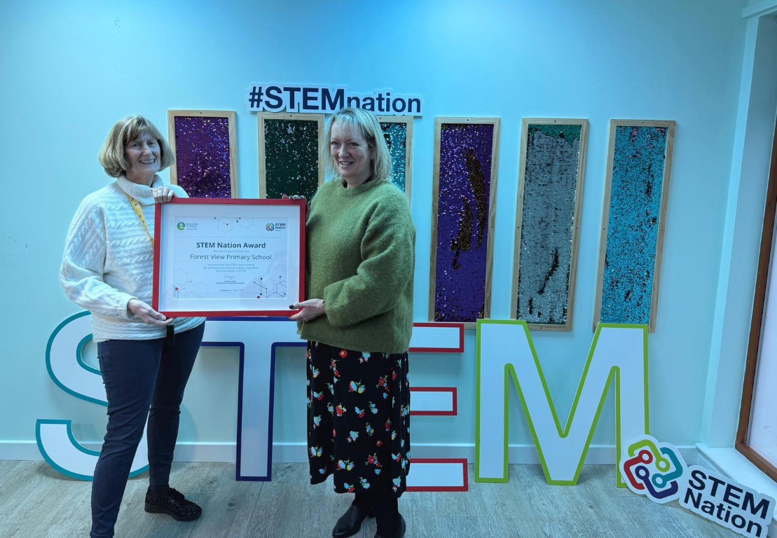 Photo: Susan Kinnen, Teacher, and Liz McDonagh, Education Manager, at Forest View Primary School with the STEM Nation Award certificate