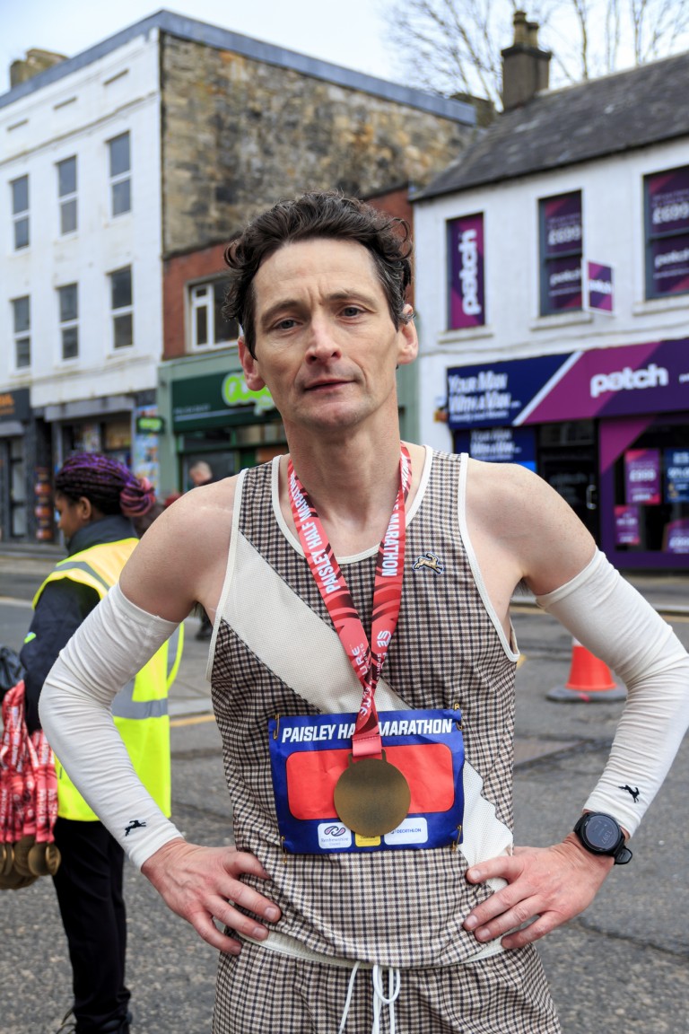 Photo: Ross Harvey finishes second in the Paisley Half Marathon with a time of 1:12:25, taking first place in the V40 category