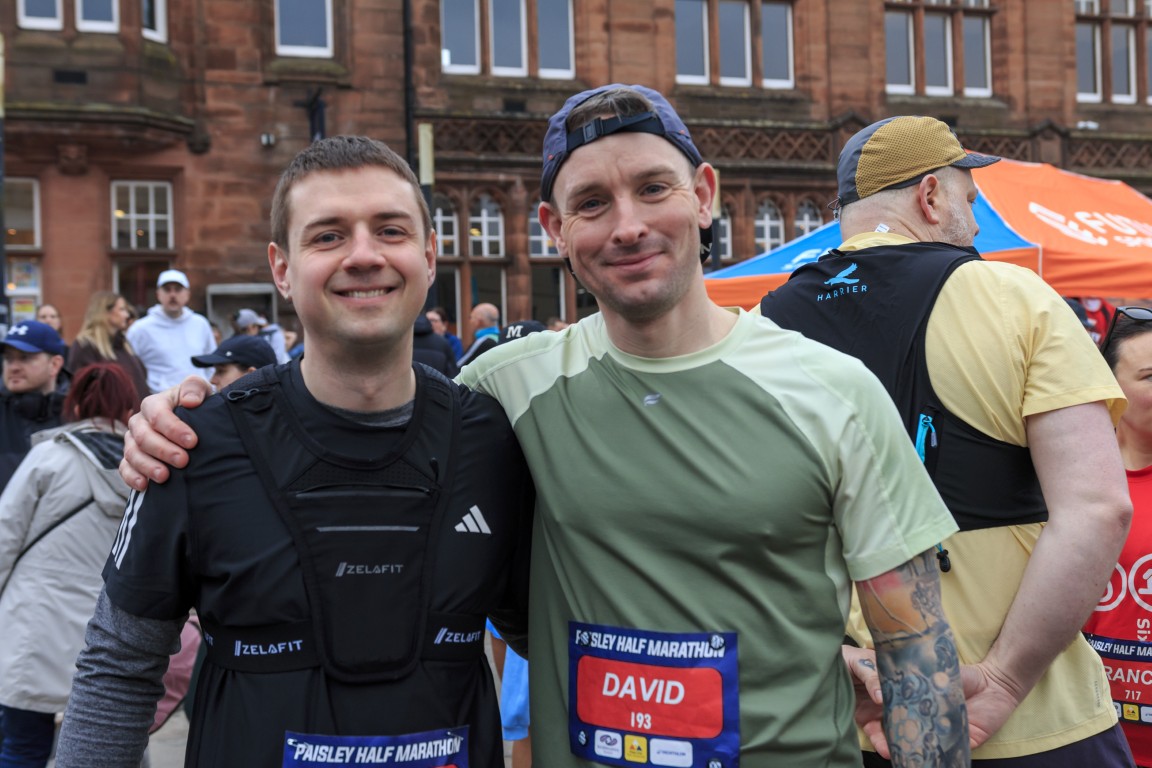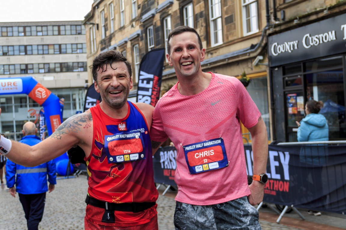 Photo: Maciej Kolodziej (left) and Chris Lorimer (right) after finishing the Paisley Half Marathon on Sunday 22nd March 2026, both recording times just over 1 hour 25 minutes in the V45 category