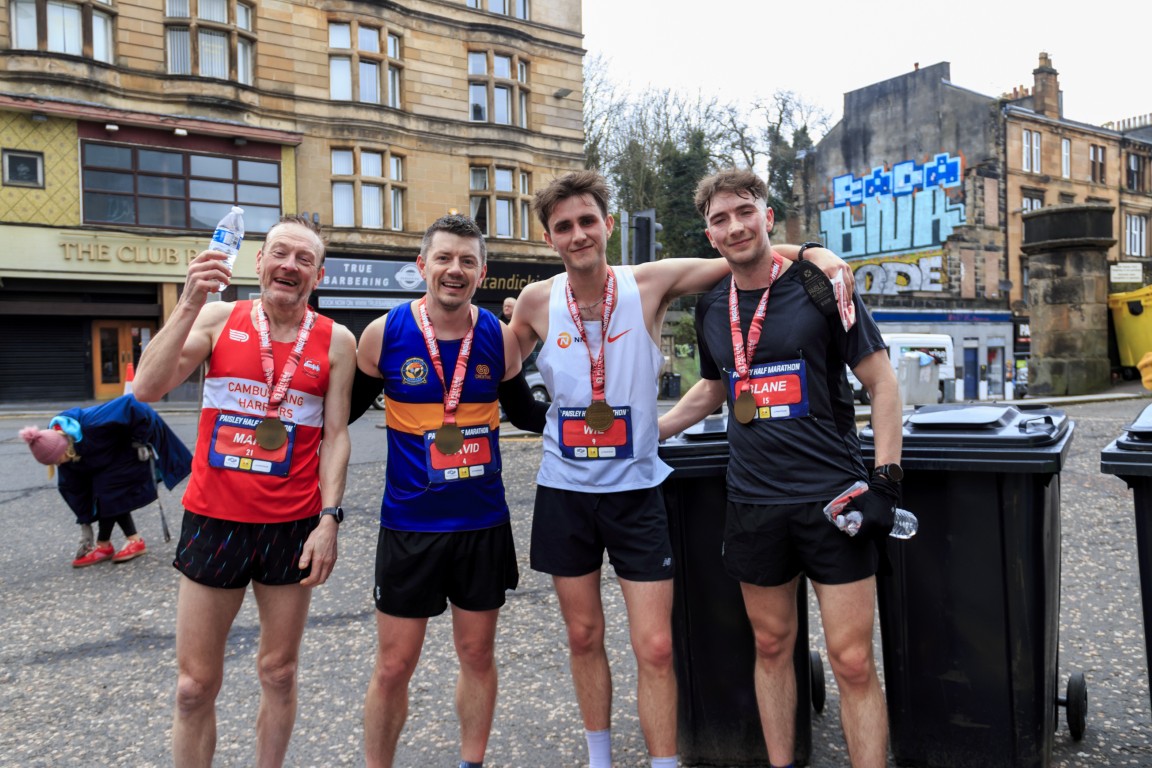 Photo: Mark King, David Houston, Wil Scott and Blane Ferris after completing the Paisley Half Marathon on Sunday 22nd March 2026, all recording strong times and category performances