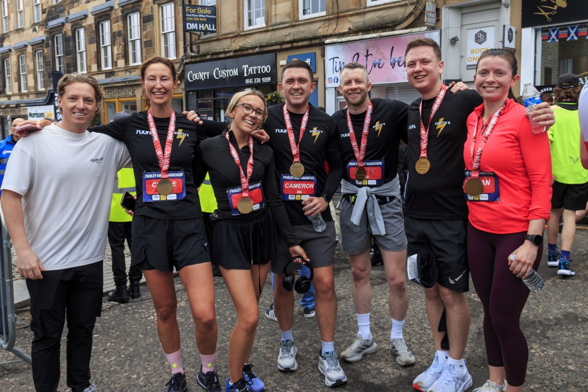 Photo: Group of runners celebrate completing the Paisley Half Marathon