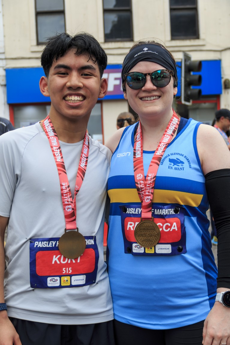 Photo: Kurt Noveros and Rebecca McCluckie after completing the Paisley Half Marathon