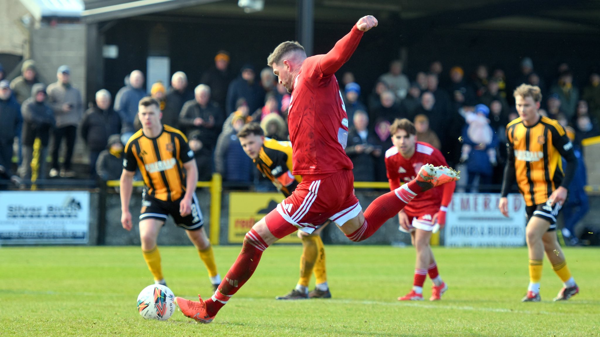 In the 22nd minute, Johnstone Burgh were awarded a penalty after Matty Grant played a lovely through ball to Kyle Lafferty, who was then fouled just inside the box by Scott Schoneville. There were big shouts from the travelling support for a red card, but the referee was content to show a yellow. Up stepped Kyle Lafferty, who made no mistake from the spot, as his right-foot effort found the top left-hand corner to make it 1-1 in the 24th minute.